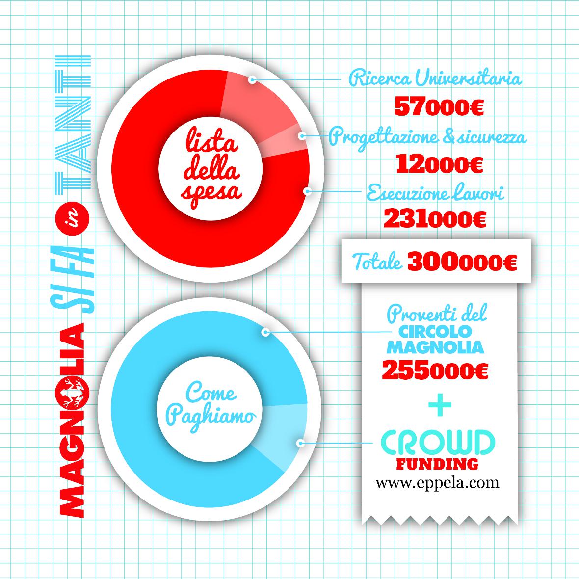 Infatti il Circolo Magnolia, grazie ai proventi delle proprie attività, investirà, e in parte ha già investito, 255000€ , i restanti 45000 € è speranza e sogno, ma anche sfida, che a metterli saranno proprio tutti coloro che nel Circolo Magnolia vedono una bella storia, virtuosa e priva di orpelli.