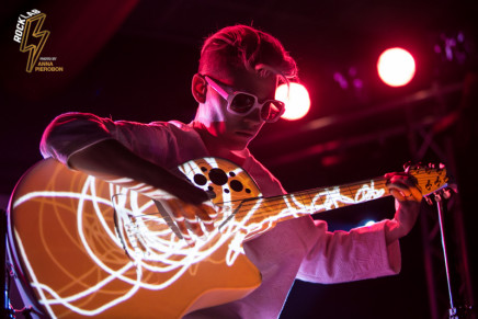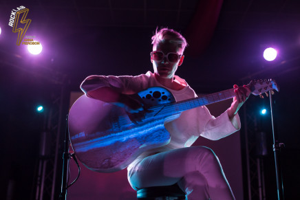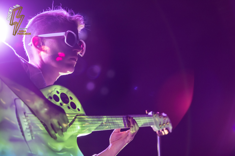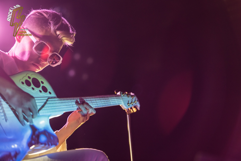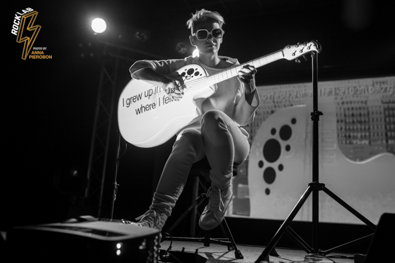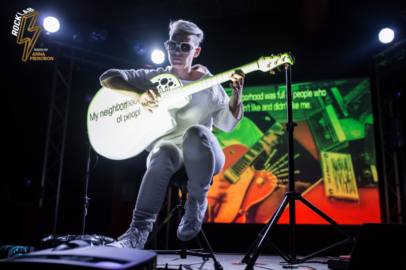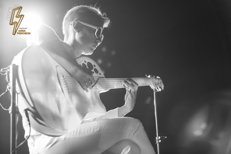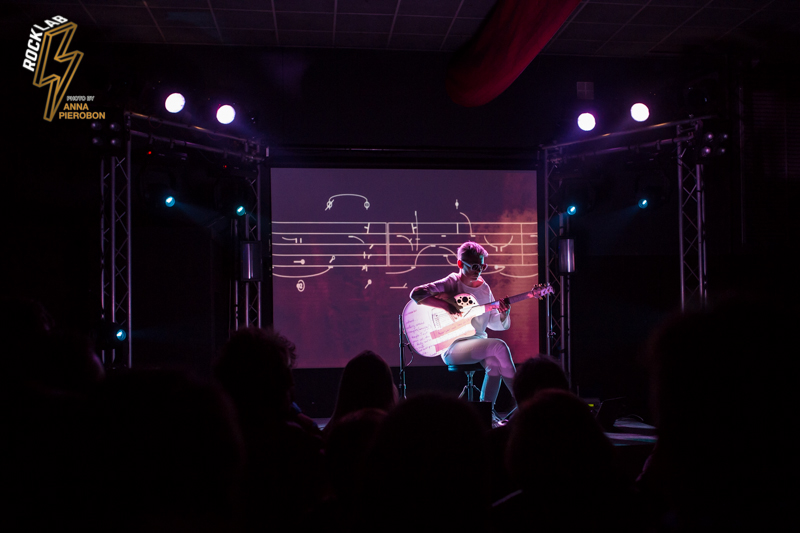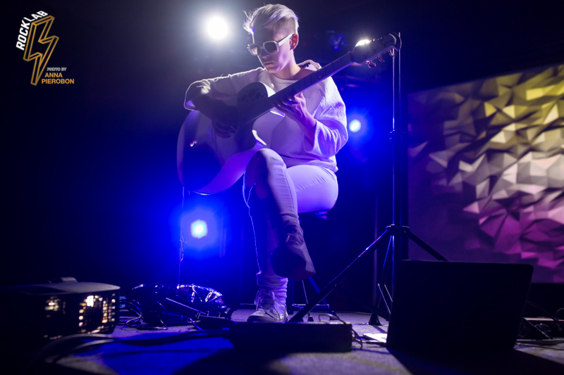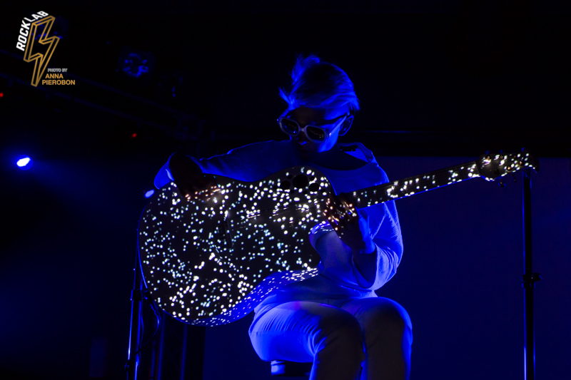 Lo spettacolo è un continuo gioco di luci e forme, con visual art che scorrono alle spalle dell’artista e prendono vita proiettati sulla sua chitarra. Kaki King usa le corde come fossero la sua voce, comunica con i suoi, scherza col pubblico attraverso la musica, e incanta. Opening act della serata la carismatica cantautrice italiana, Angelica Lubian.