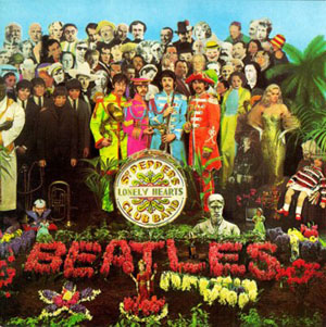 Ma un prodotto che si rispetti comprende anche un aspetto esteriore: e qui si arriva all’inevitabile questione della copertina, probabilmente la più chiacchierata della storia. Enumerarne per l’ennesima volta i protagonisti sarebbe terribilmente noioso: basti sapere che l’immagine comparsa come risultato finale non è un semplice taglia e incolla su disegno, ma riproduce un vero e proprio collage a grandezza naturale. Due anni prima che Warhol tratteggiasse i contorni di una banana su un’altra leggendaria copertina musicale, il pittore Peter Blake ( che del newyorchese fu estimatore e discepolo) crea per la banda del Sergente nientemeno che settanta statue ad altezza d’uomo, raffiguranti diversi personaggi della cultura contemporanea, ritratti senza nessuna pretesa di realismo ma così come li si vede sulle riviste patinate o sulle locandine: nella loro versione pop. Nonostante gli sforzi di Blake tendessero alla concretezza in tre dimensioni, lo scatto finale di Michael Cooper
