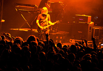Il set è stato piuttosto breve e probabilmente il motivo è cio’ che verrà dopo di loro: i Porcupine Tree con il loro show lungo due ore. Sul finale di Flying gli Anathema ci lasciano e sul palco arrivano strumentazioni di vario tipo a sostenere uno show ricco non solo di musica ma anche di effetti scenici. Il concerto inizia con l’intro adio-video tratto dal loro ultimo album (Fear of a Blanck Planet) che già lascia intendere quale sarà lo stile del concerto. Inizio un po’ freddo a livello strettamente musicale anche per via della poca dimestichezza del pubblico con i nuovi pezzi e della concentrazione della band nel suonarli. L’aria si riscalda decisamente con il terzo brano (Lazarus) con cui Steve Wilson inizia a prendere veramente possesso del palco e da qui in poi sarà il mattatore della serata in maniera totale (anche perché il resto della band non sembrava molto partecipe). Da metà scaletta in poi le atmosfere rarefatte diminuiranno a favore di cavalcate sonore tra le quali spicca quella della lunga Anesthetize e quella diretta e coinvolgente di Open Car.