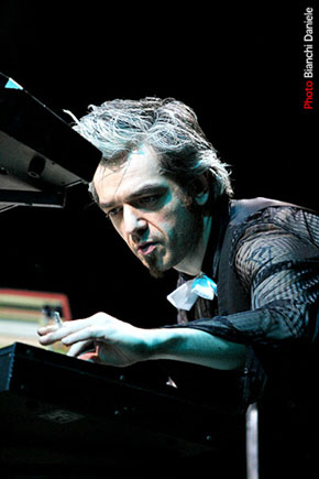 Una pausa cena per riprendersi dal Teatro e dai suoi Orrori ed ecco Morgan, oramai portatore di una duplice identità: una è quella del personaggio televisivo in voga (remember X Factor?), sentenziata e confermata dalle tantissime ragazzine adolescenti che lo attendono all’uscita del backstage, con cartelli alla “Morgan 4 ever” o “Morgan sei la nostra emozione”. Già da qui si apre un interrogativo: quante delle sopraccitate (e sovraeccitate) piccole fans seguono il buon Marco Castoldi dal punto di vista musicale? A voi l’ardua sentenza. L’altro lato di Morgan si sviluppa ovviamente sul palco: accompagnato da tanti aggeggi elettronici e supportato dal compare Megahertz, nella sua esibizione in veste synthpop e intervallato da pause e tempi morti da melodramma sviluppa canzoni sue (Amore assurdo, Animali Famigliari, Me), brani di tempi che furono e che a quanto pare saranno (leggasi “pezzi dei Bluvertigo”: Decadenza, La crisi, la chiusura con Altre forme di vita) e cover più o meno scontate (Fashion di David Bowie e Ma cos’è questa crisi canzone futurista scritta nel 1933 da Rodolfo De Angelis).