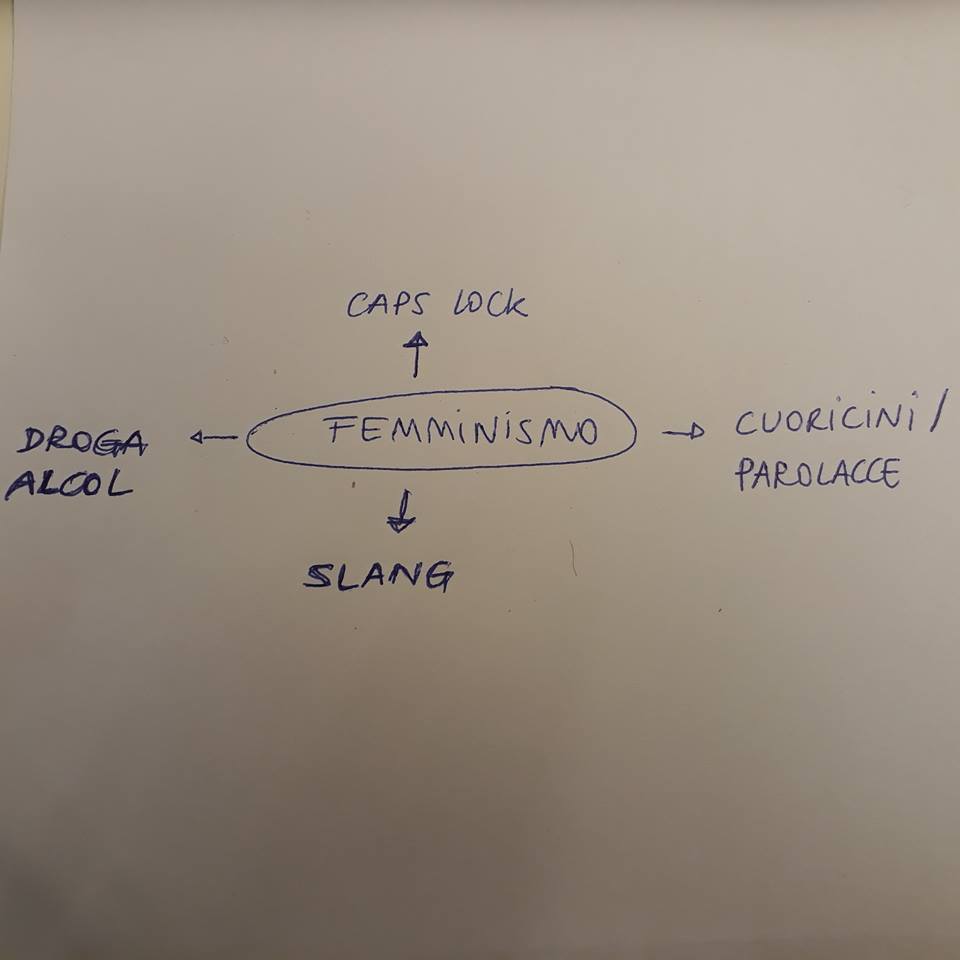 Una bella versione femminile di quel parlato “melting pop” del quale conosciamo già la deriva mascolina (sensibile/romantica), grazie al meme su Facebook a firma Tommaso Paradigma: al quale oramai si ispira perfino Tommaso Paradiso, probabilmente di nascosto. Quando impari a parlare così poi è come una droga, non vorresti più smettere, ci stai dentro, il tuo più grande desiderio è che il caps lock possa prendere forma anche quando le parole escono dalle tue labbra, per esempio quando ti senti che “VUOI SUBITO UNA BIRRA” oppure che il concerto è “UNA BOMBETTA”. Se ci potessimo tirare addosso dei maiuscoli quando conversiamo tra noi ci sembrerebbe tutto molto più significativo.